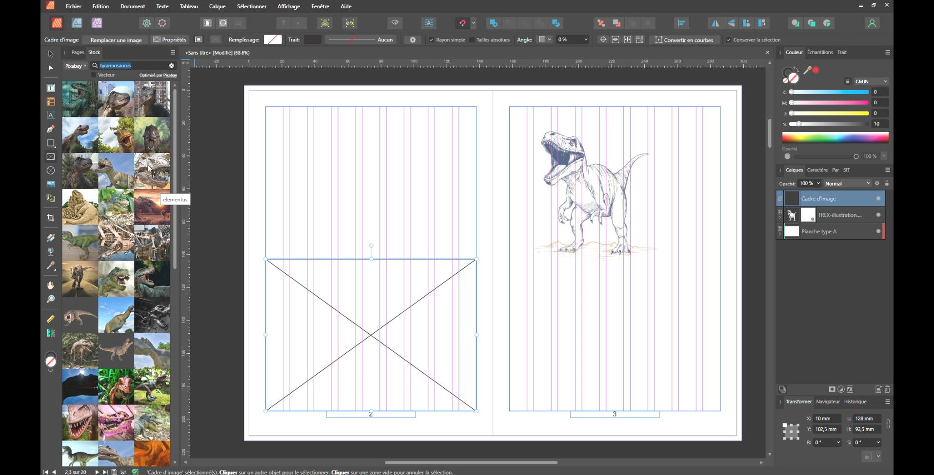 Dupliquer et positionner les éléments sur les deux pages d’une double planche
