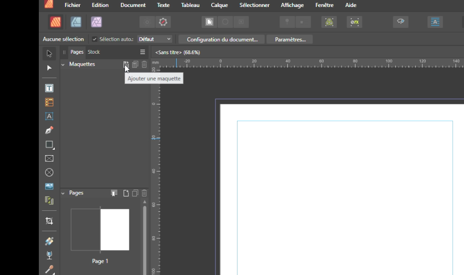 Créer une nouvelle maquette via le panneau Pages à gauche de votre espace de travail par défaut. Cliquez sur "Ajouter une maquette"