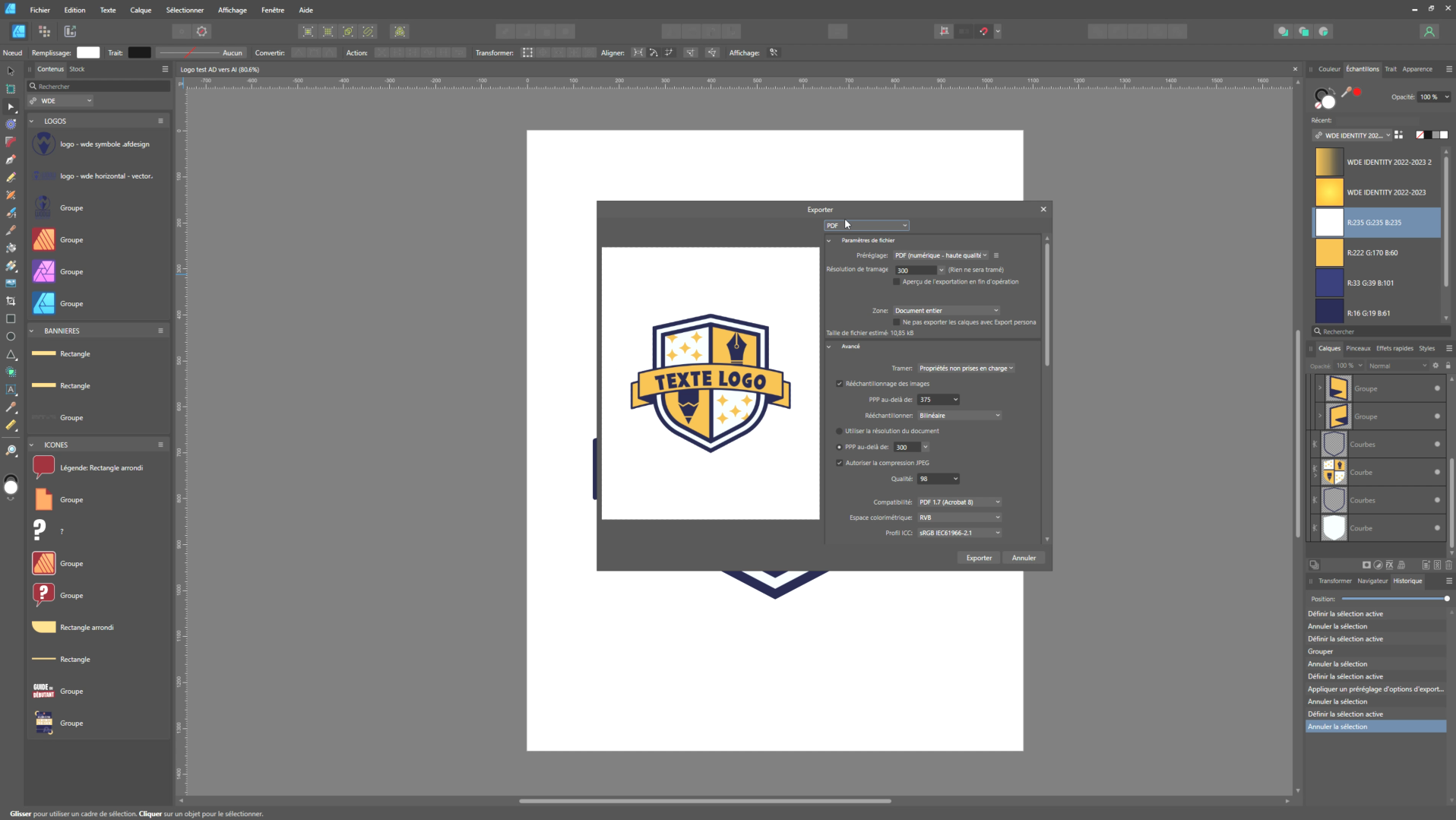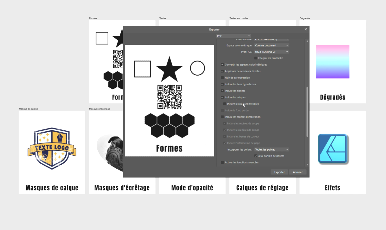 La première étape consiste à exporter votre fichier Affinity Designer au format PDF. Voici comment faire :
