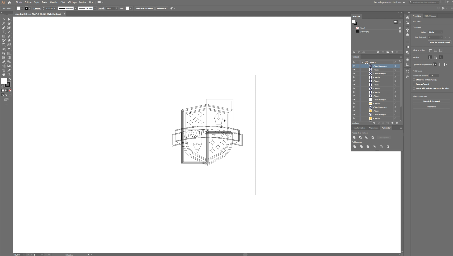 ✅ À l'ouverture le fichier .ai, Illustrator a conservé les courbes vectorielles, les textes convertis en courbes ainsi que les bonnes couleurs.
