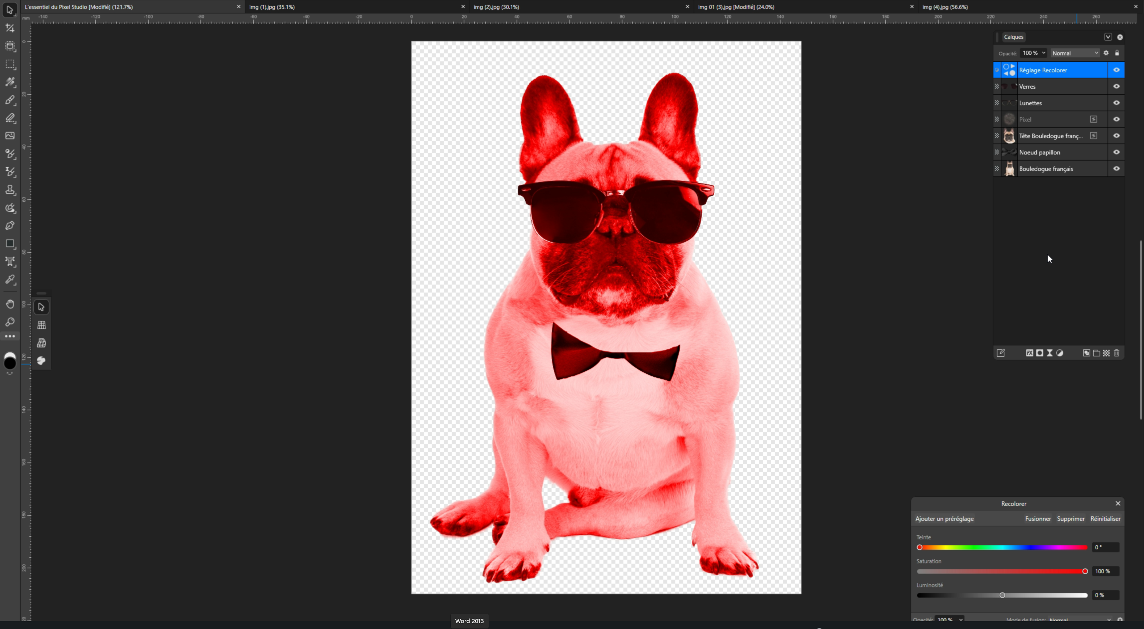 Son effet s'applique alors à tous les calques qui sont sous ce calque. Faites l'essai avec le calque de réglage Recolorer.
