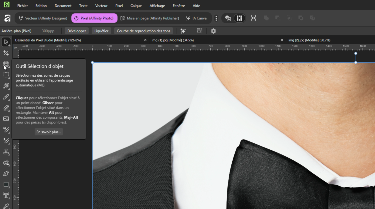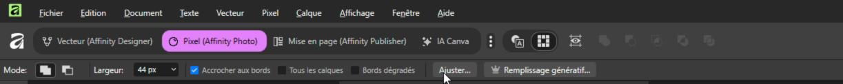 Les outils que vous devez absolument maîtriser dans Affinity et dans le Pixel Studio, ce sont les outils de sélection.