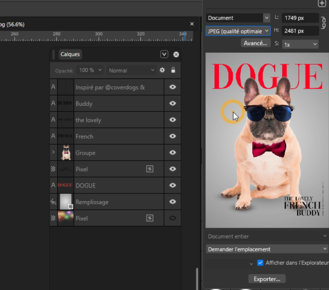 Pour finaliser la mise en page, vous pouvez regrouper les calques de la composition avec ctrl+G,
