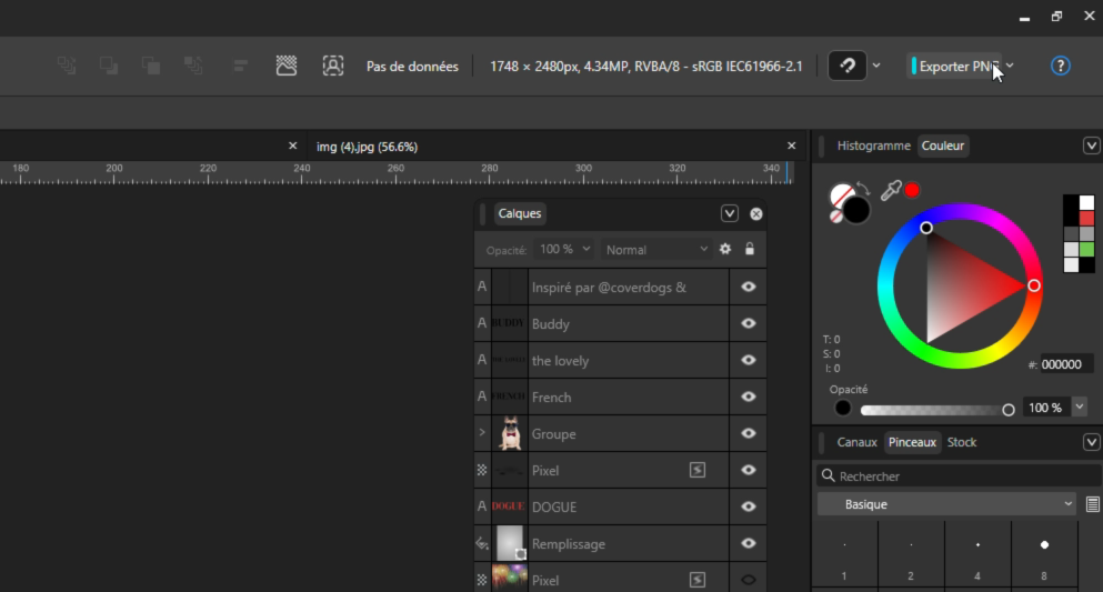 Pour exporter une création instantanément, cliquez sur le bouton Exporter en .png en haut à droite de la barre d'outil supérieure.