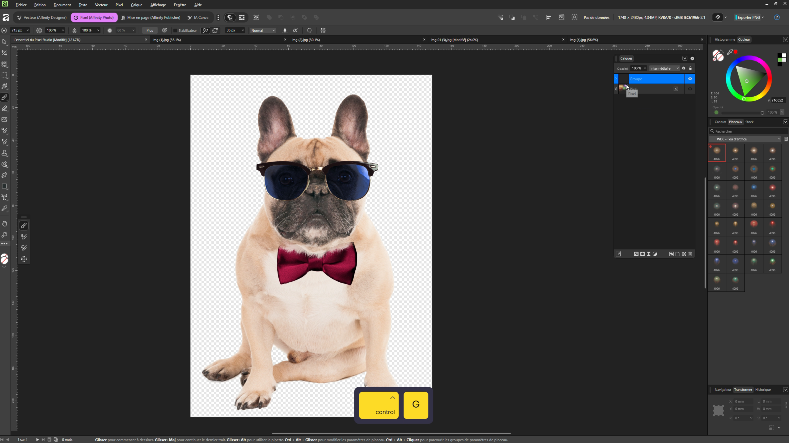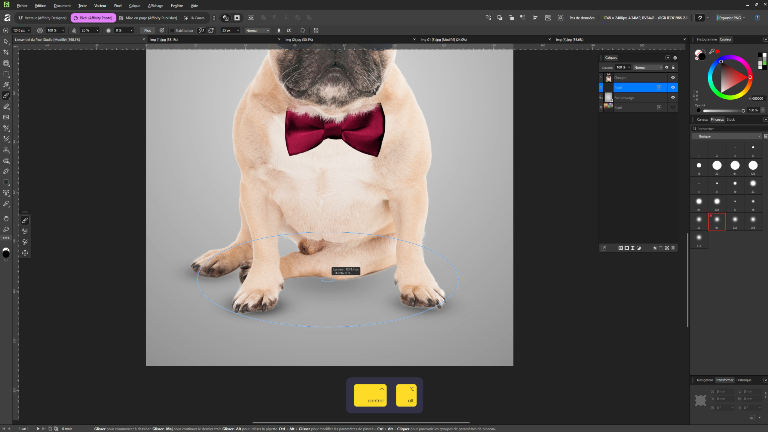 Là aussi, vous pouvez travailler sur un calque pixel au-dessus et en activant l'option “calque actif et sous-jacent” pour une retouche non destructive.