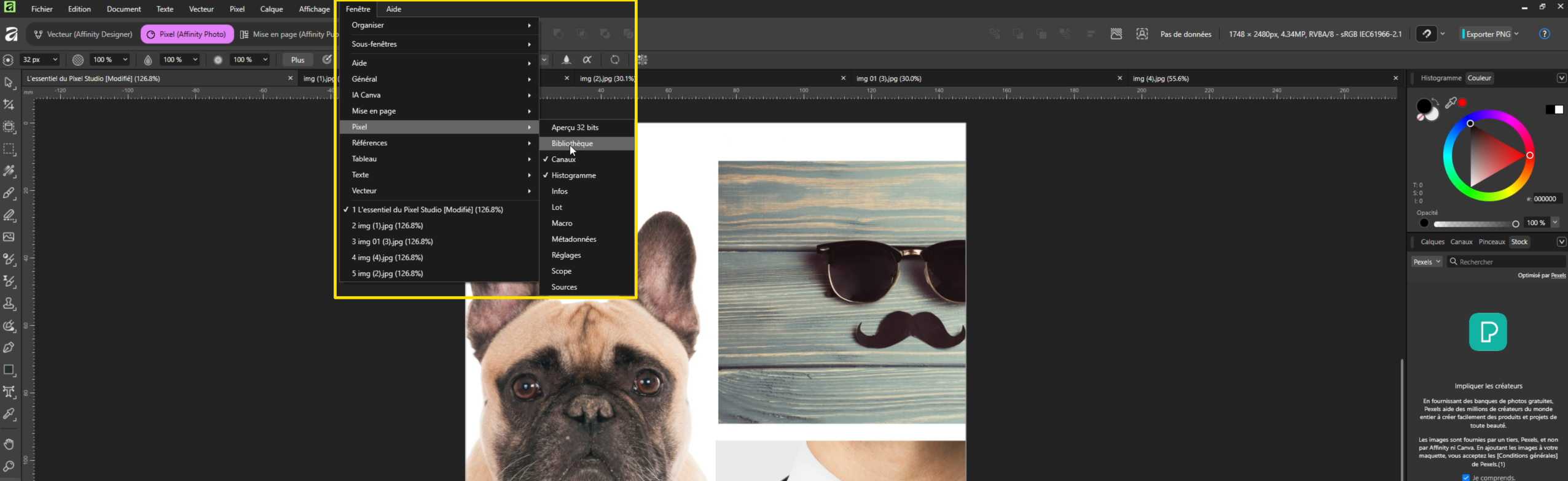 L'essentiel pour débuter les manipulations d'images avec le Pixel Studio dans Affinity by Canva