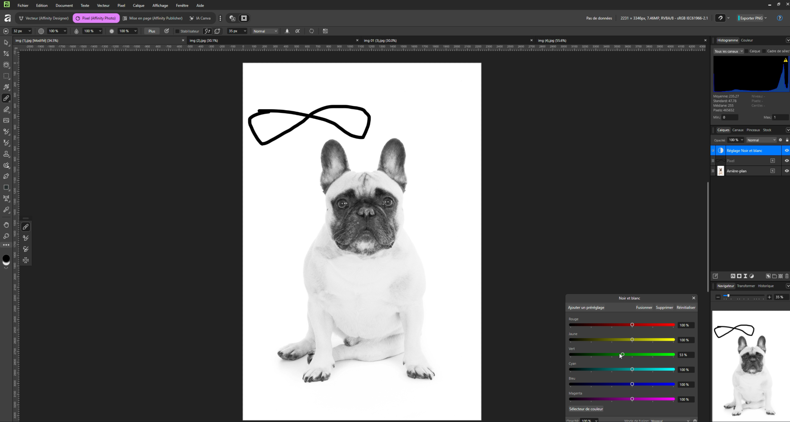 Vous pouvez ainsi naviguer entre les différentes images à retoucher, les réordonner pour réorganiser votre travail, et même séparer un des onglets pour travailler séparément dans un autre espace. Si vous souhaitez remettre l’onglet à sa place, vous le cliquez et le glissez au niveau des autres onglets d’images.