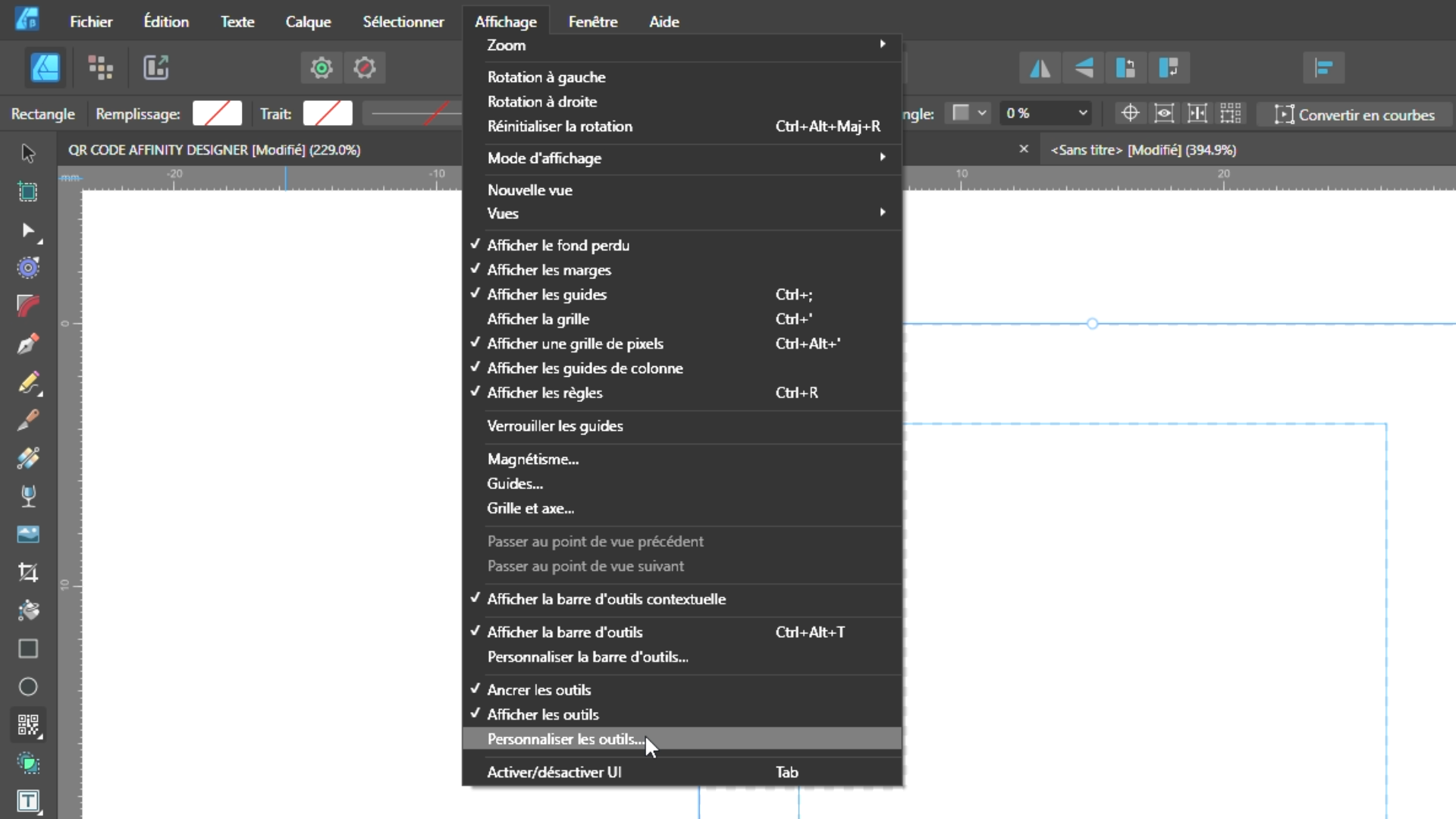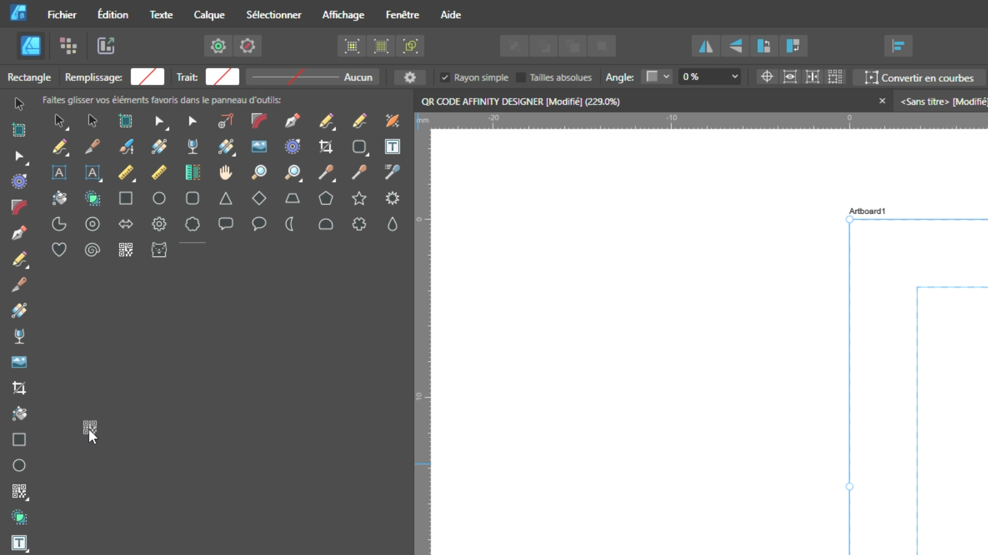 L'outil QR code dans Affinity Designer se trouve dans la section des outils de forme. Pour l'utiliser :