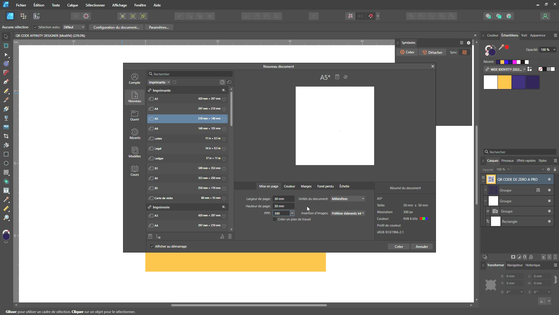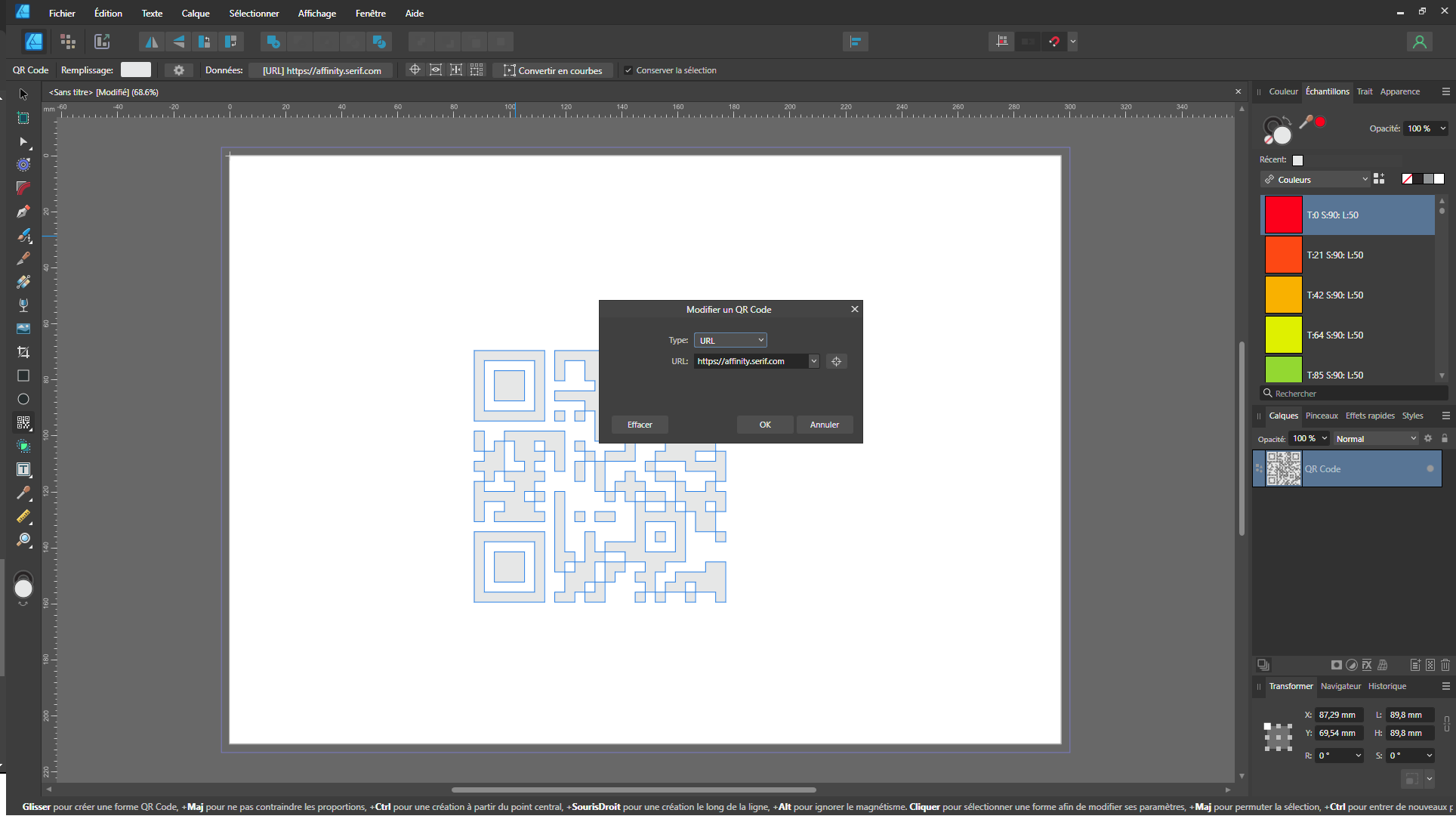 Étape 1 : Créer un QR code dans Affinity Designer