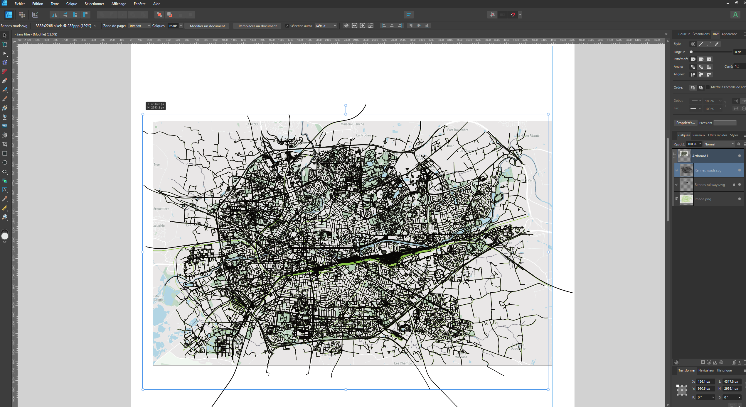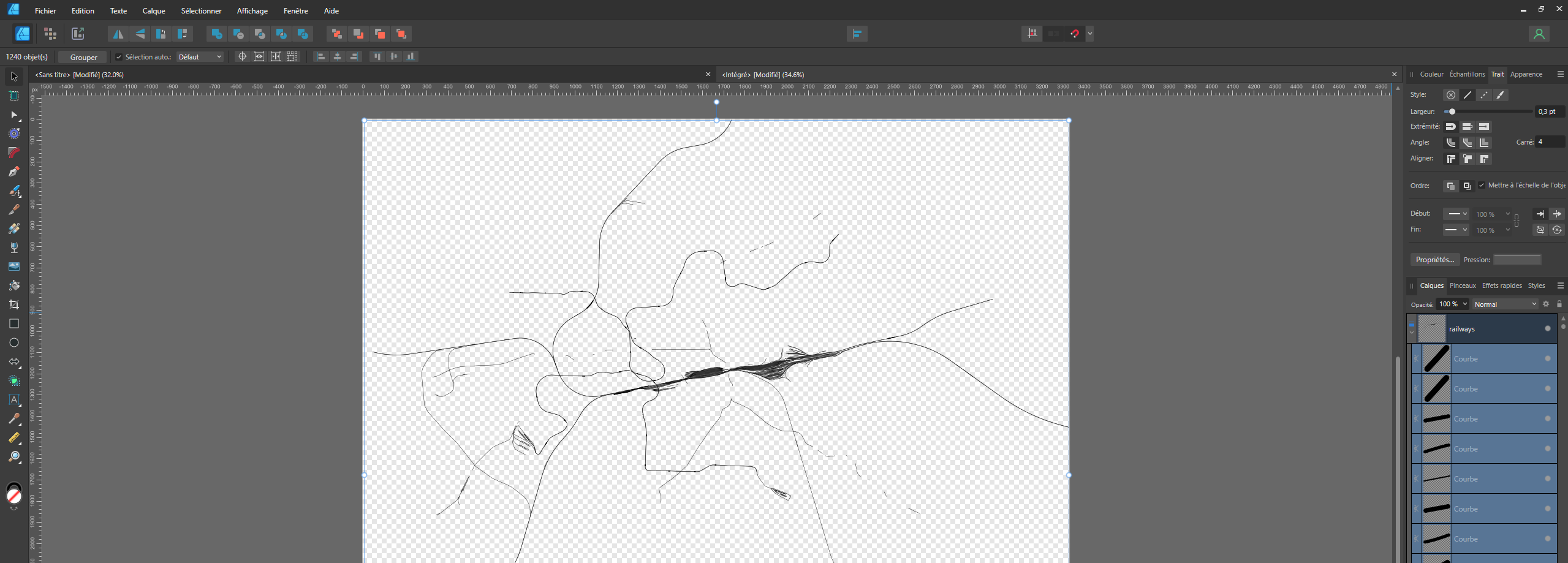 Importez vos fichiers SVG (“routes” et “railways”) dans votre plan de travail.