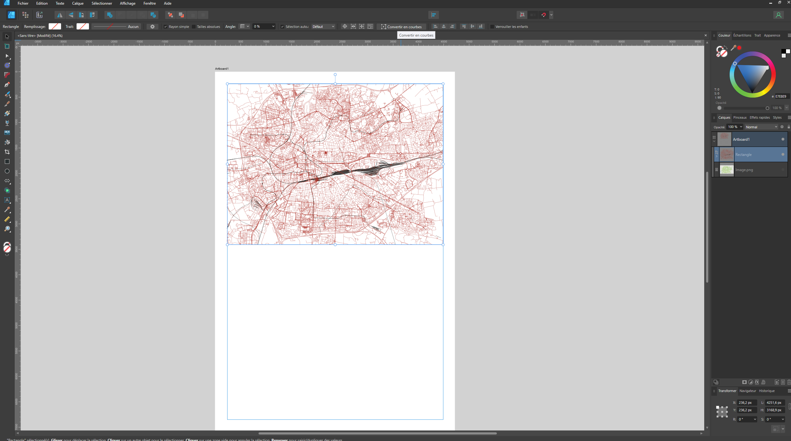 Affinity Designer ne lit pas directement les fichiers .shp. Il faut donc les convertir en fichiers SVG, le format vectoriel standard.
