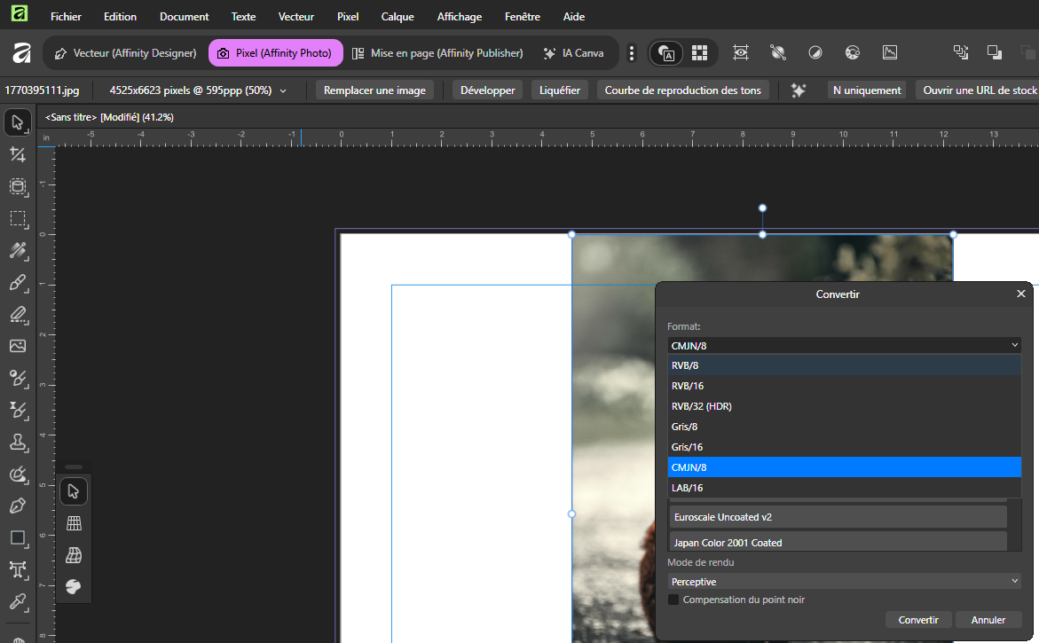 Si besoin, voici comment convertir un document CMJN en RVB.