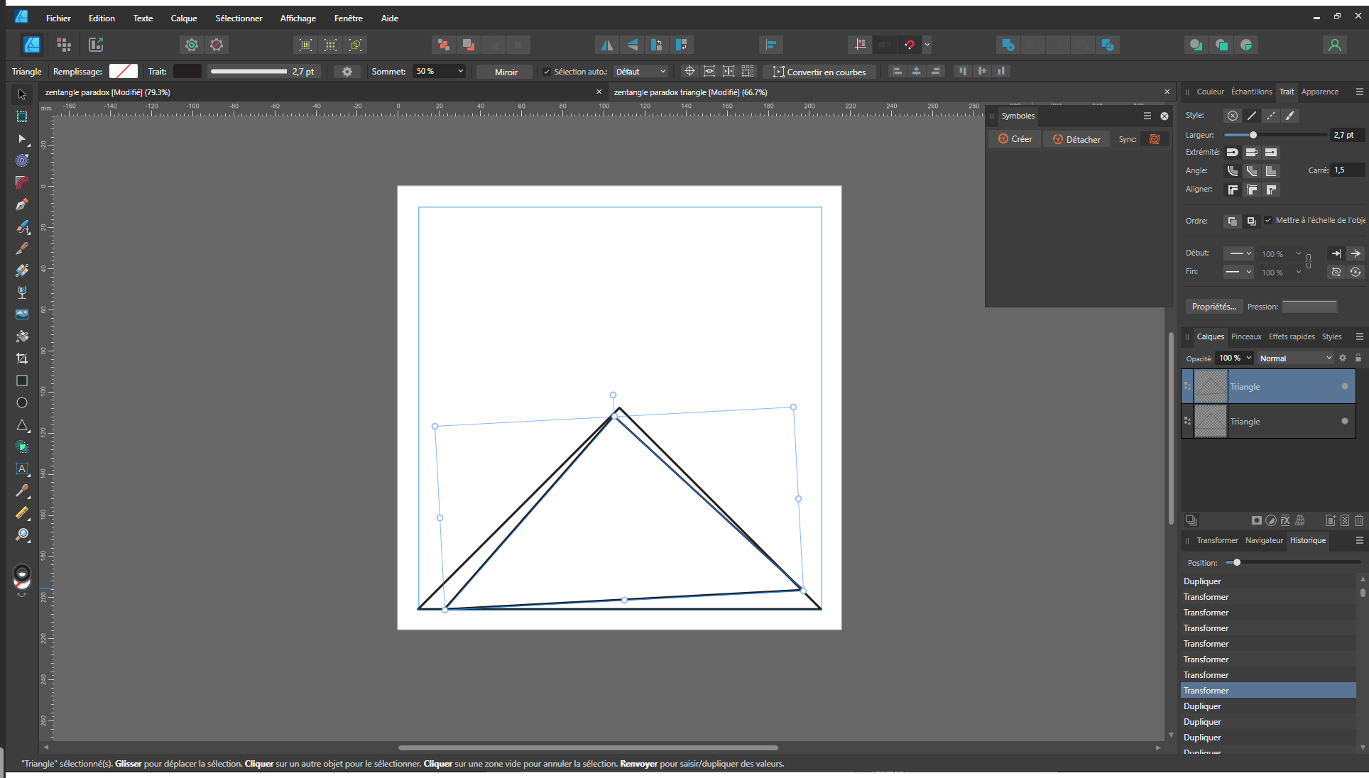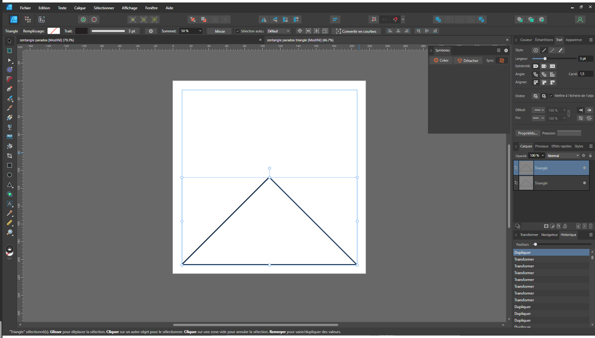 Comme pour le carré, regroupez les triangles dans un masque d’écrêtage puis créez un symbole.