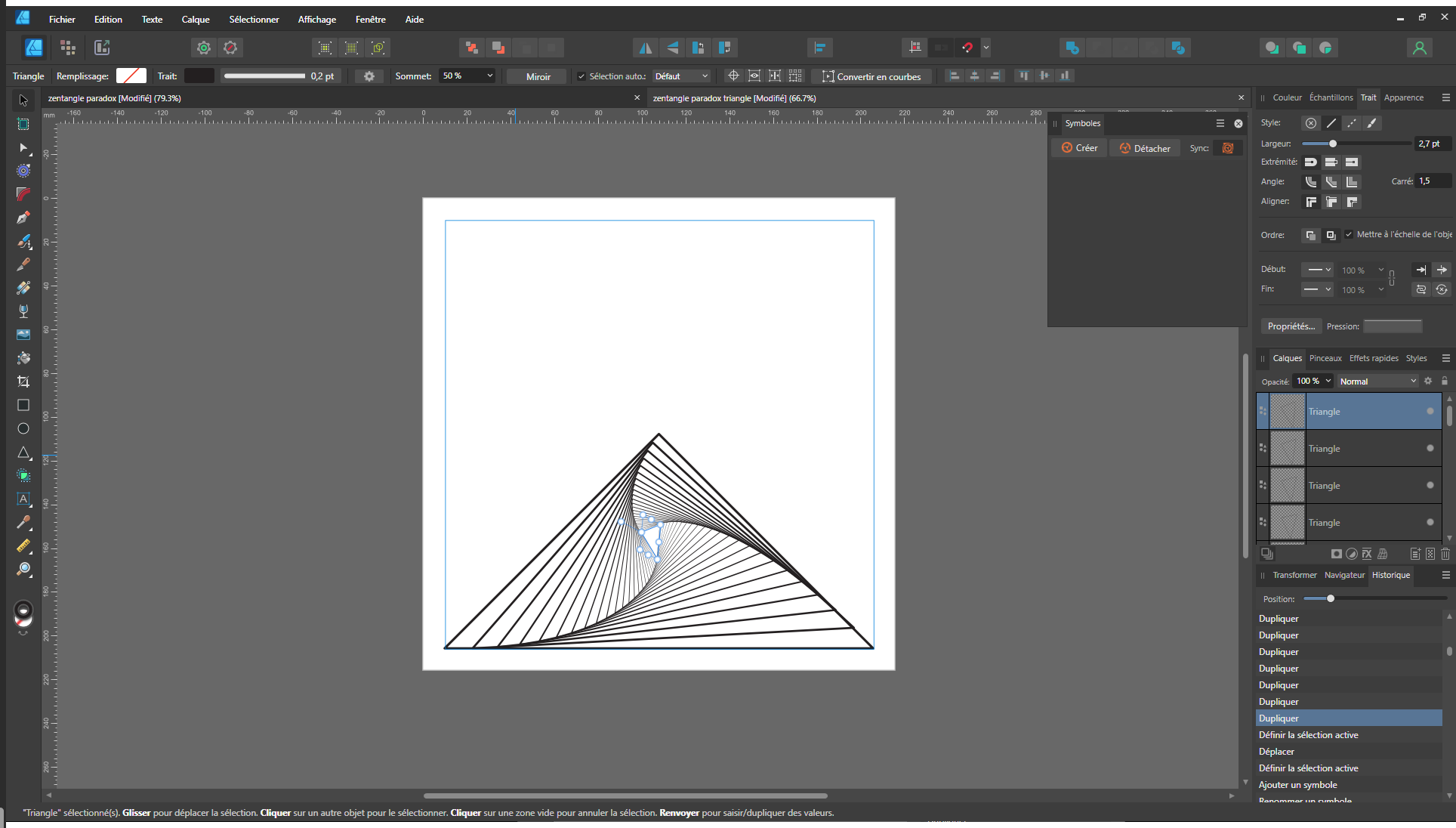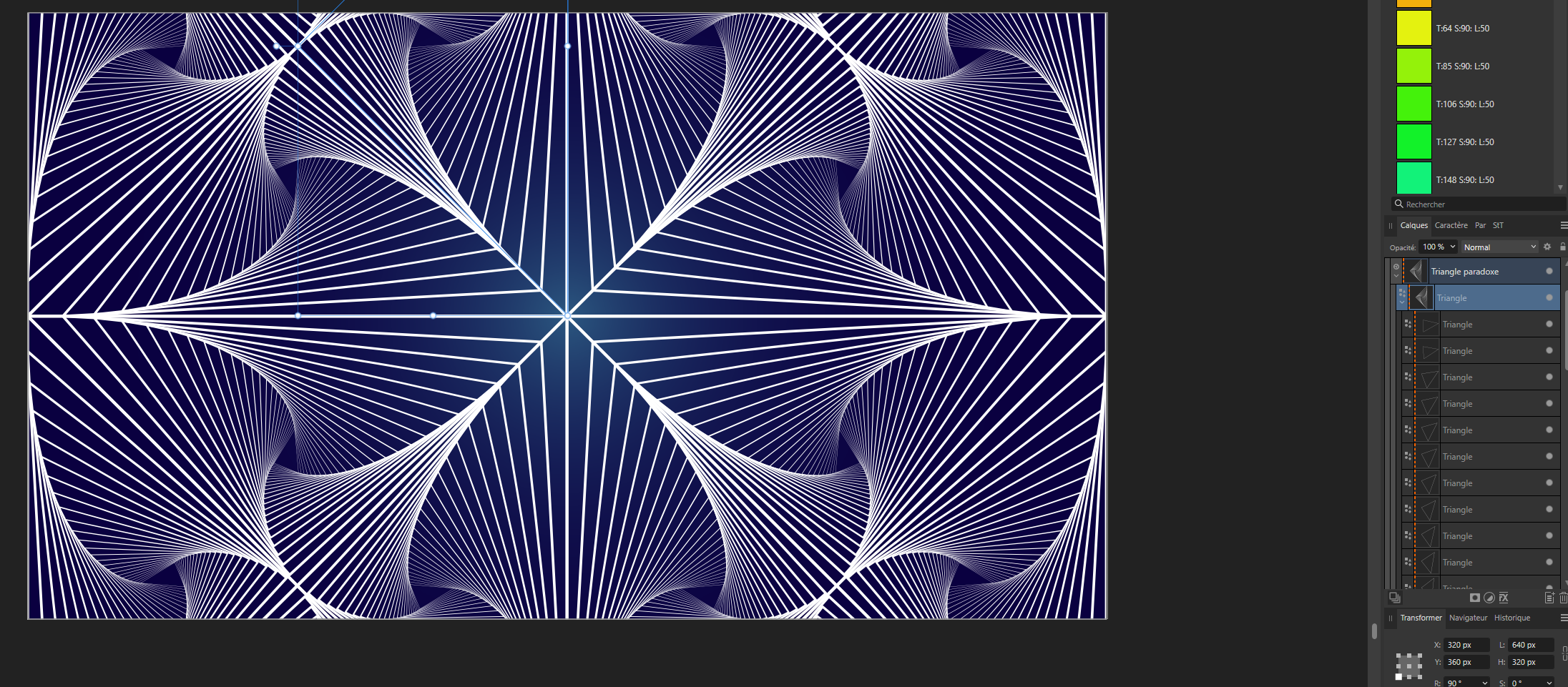 Certains artistes tracent chaque ligne du paradoxe à la main, avec l'outil Plume... C'est peut-être relaxant pour certain mais personnellement, je trouve cela très fastidieux alors qu'Affinity Designer possèdes des fonctions d'automatisation des taches.