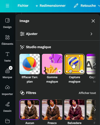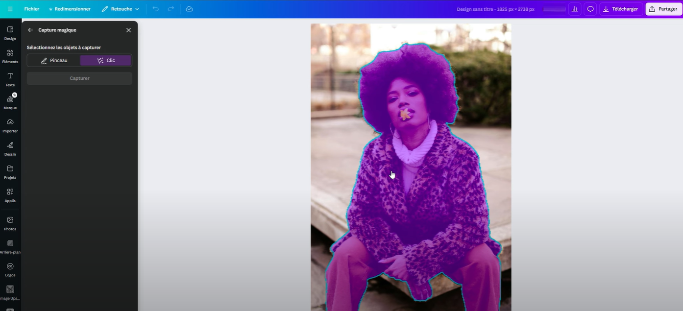 Pour une comparaison, nous avons également testé la fonctionnalité de détourage sur Canva Pro. Les outils premium de Canva, comme les captures magiques, offrent des résultats similaires en termes de détection du premier plan et de l'arrière-plan.