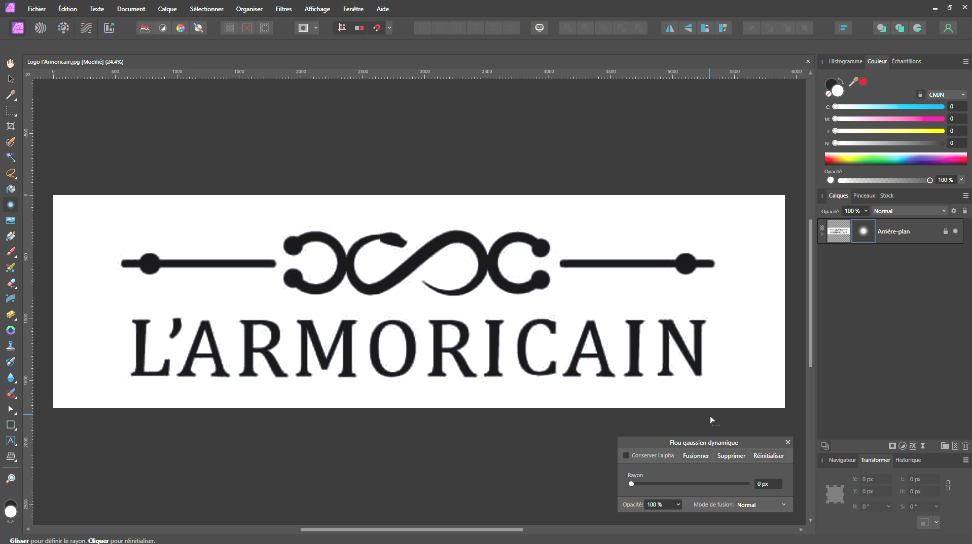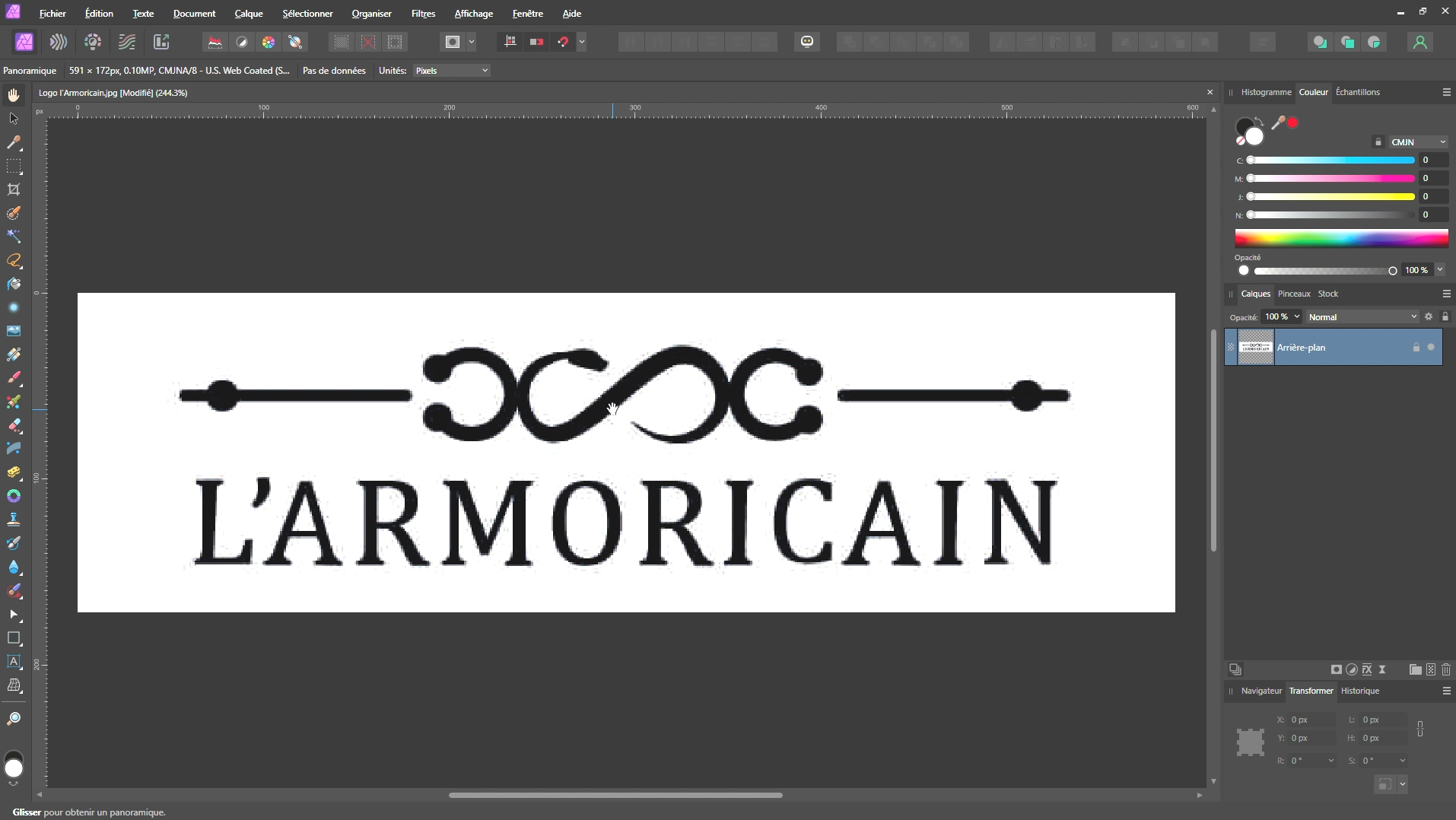 Pour commencer, ouvrez votre logo dans Affinity Photo au format JPEG. Assurez-vous que :